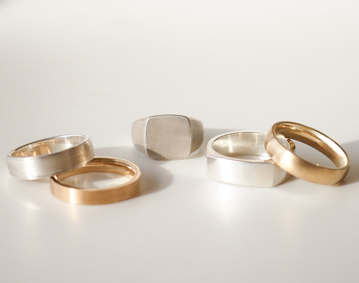 Our bands range from slim to substantial, flat-top to rounded edge. A wider profile makes more of a statement, while narrower bands offer a minimalist touch. Try a few on and see what feels best — it should sit naturally on your hand.