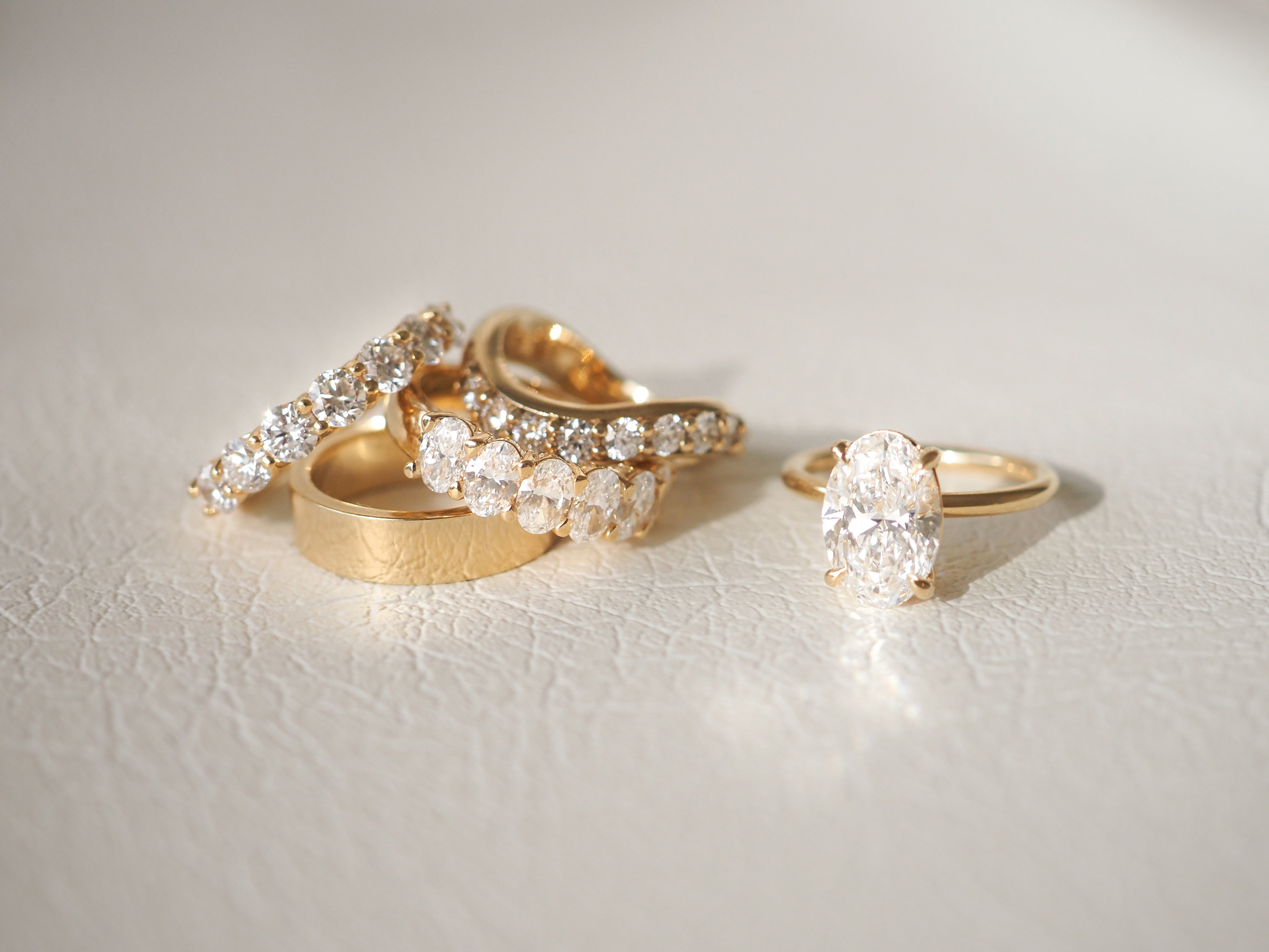 The Clara Ring, our signature oval cut lab-grown diamond held within a simple four-talon claw setting, is one of our most loved designs. Whether you're drawn to a timeless plain band or a delicate diamond ring, we’ve chosen four beautiful bands that pair seamlessly with Clara each one offering a unique way to complete your stack.