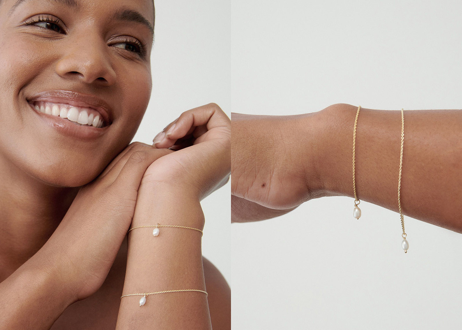 Left: Sierra wears the 19cm Tiny Letter Bracelet / Size AU 14 | Right: Cece wears the 17cm Tiny Letter Bracelet / Size AU 8