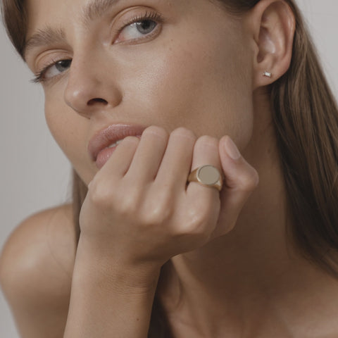 A modern heirloom, the Bold Round Signet makes an impact. Its generous shape allows for intricate engraving or a hand-set lab-grown diamond or birthstone, transforming it into a truly personal statement. Designed to last a lifetime, this piece is made to order just for you.