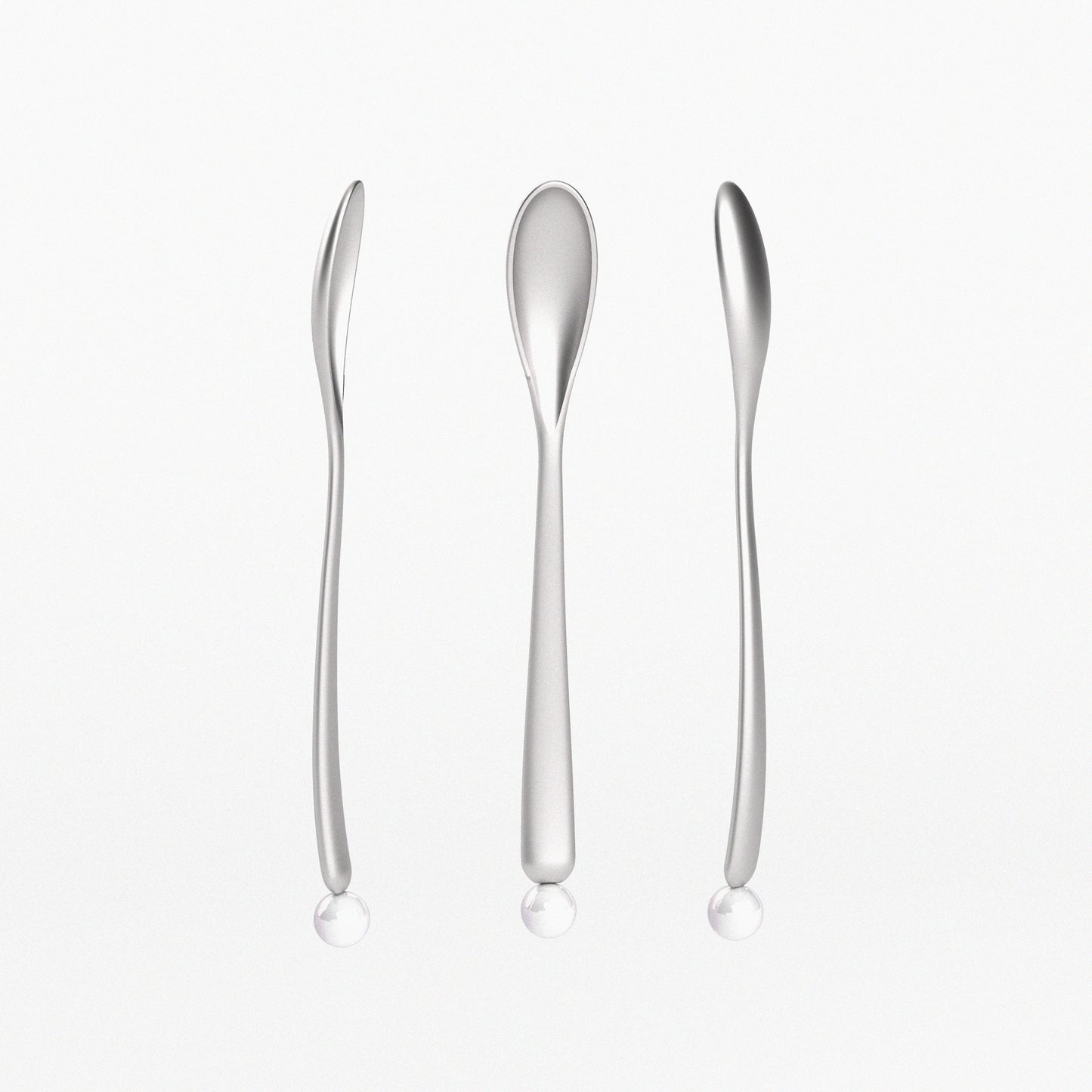 Created for hosting, gifting, and collecting, our cocktail cutlery is defined by refined detail and subtle contrast, pairing a gradient of polished and brushed silver with lustrous freshwater pearls in quietly striking forms. Crafted in solid sterling silver—a material chosen for its permanence—each piece is designed to feel weighty, balanced, and intentional in the hand.