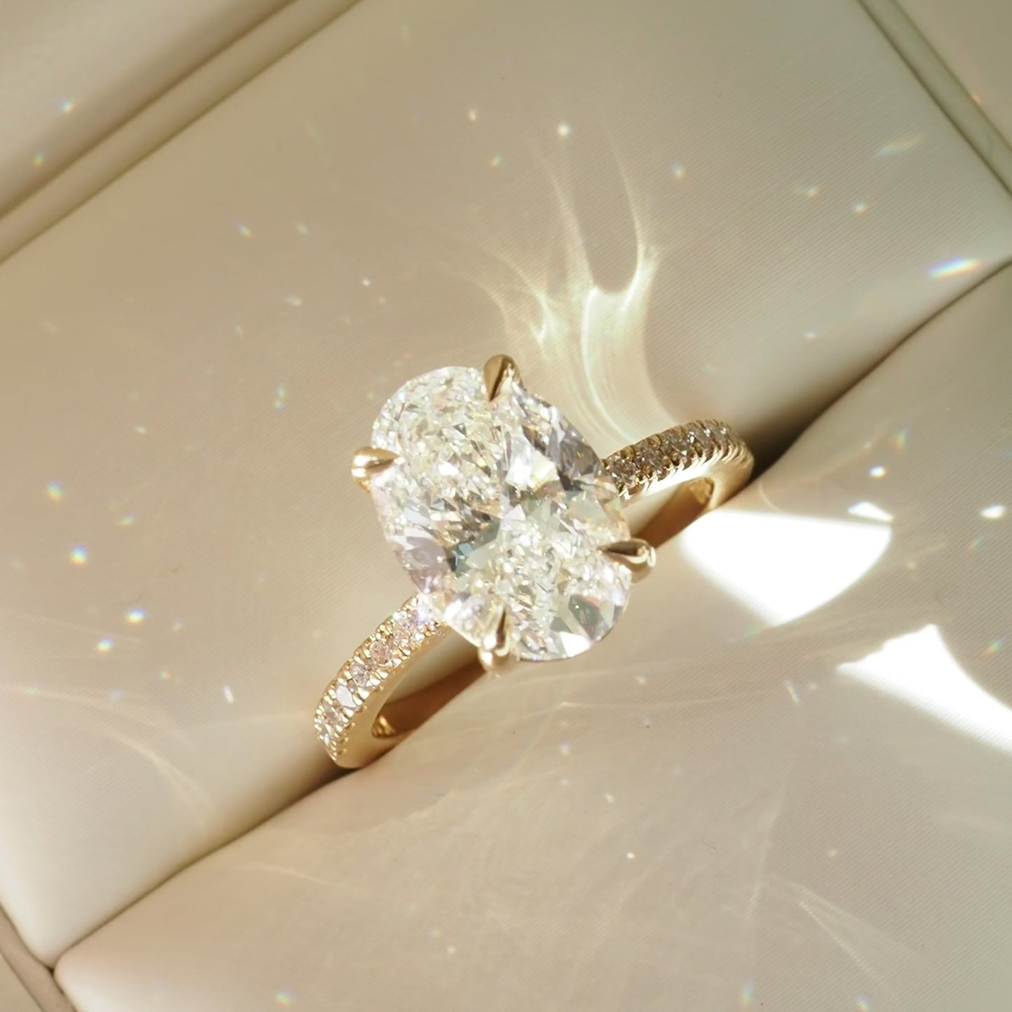 Our signature oval lab-grown diamond engagement ring—ready to wear