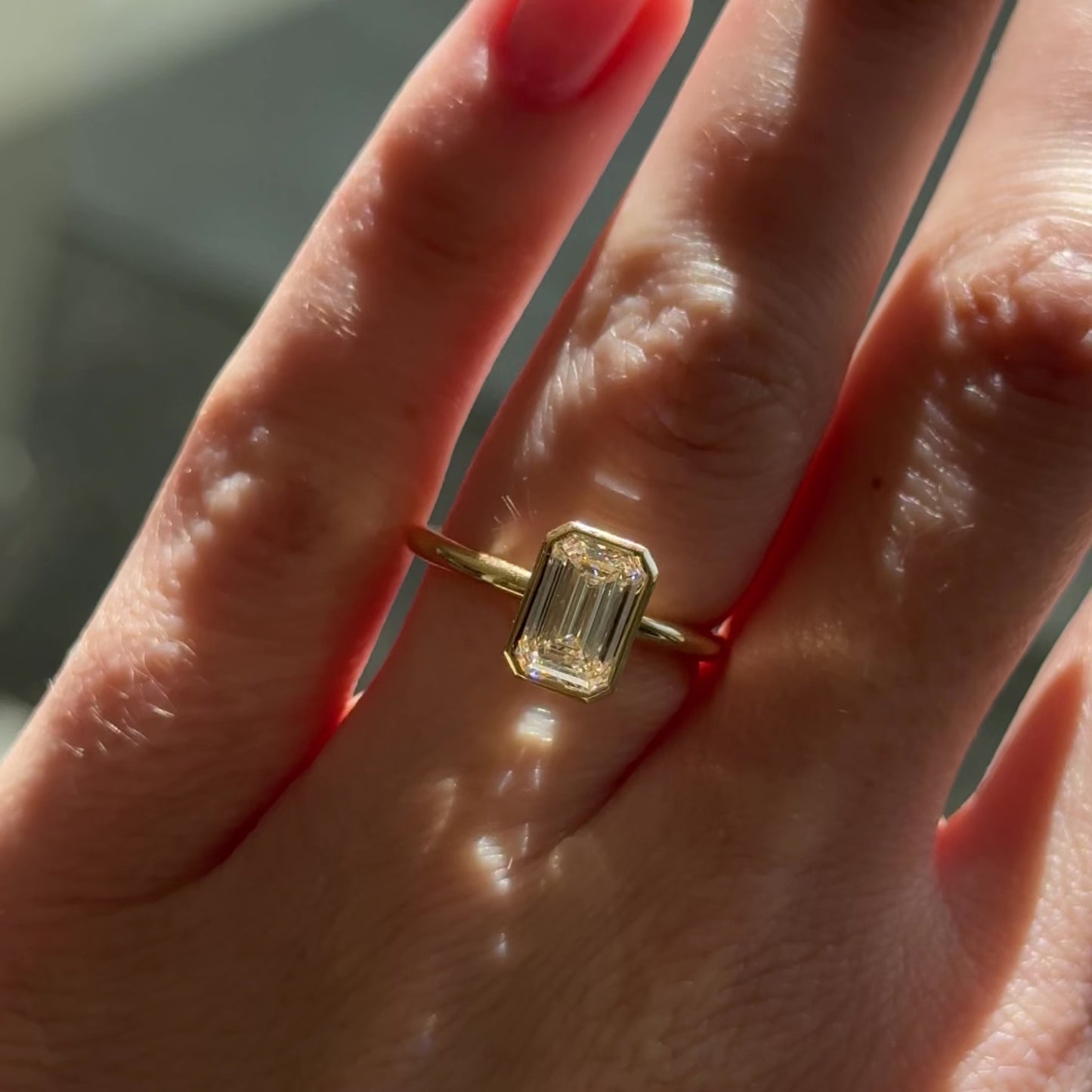 Eira • Emerald Bezel Diamond Engagement Ring Ready Made