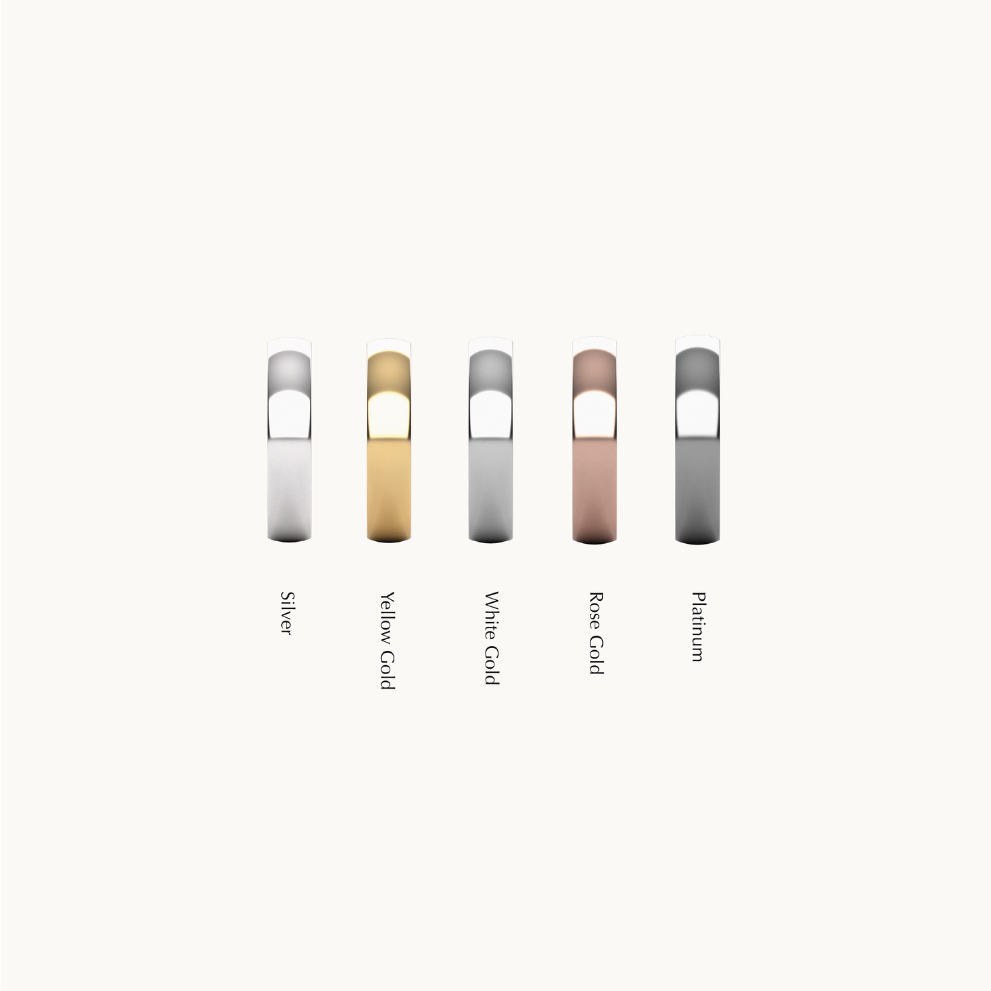 Available in a brushed or polished finish. This band comes in three different widths 4mm, 5mm and 6mm (as pictured).