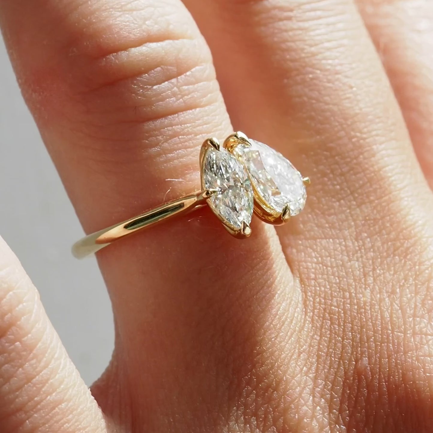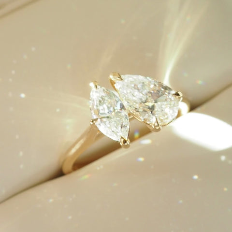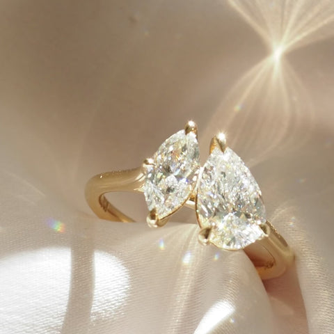 An exquisite Pear & Marquise lab-grown diamond Toi et Moi style — ready to wear