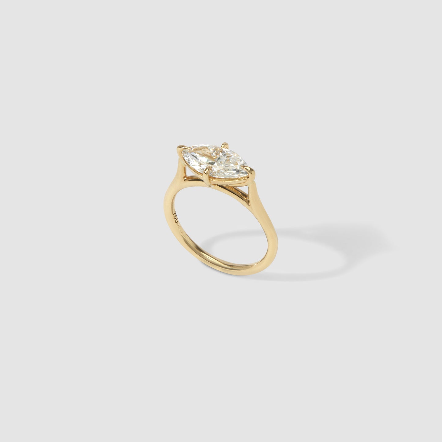 Setting: 18ct Yellow Gold | 4 Claw | East West Orientation | 1.8mm Round Sweep Band | Size L